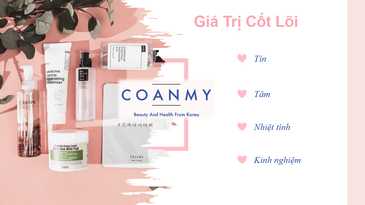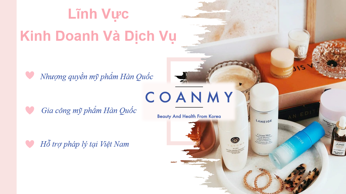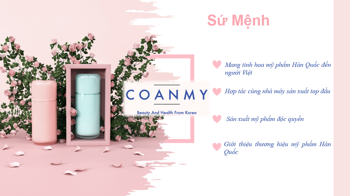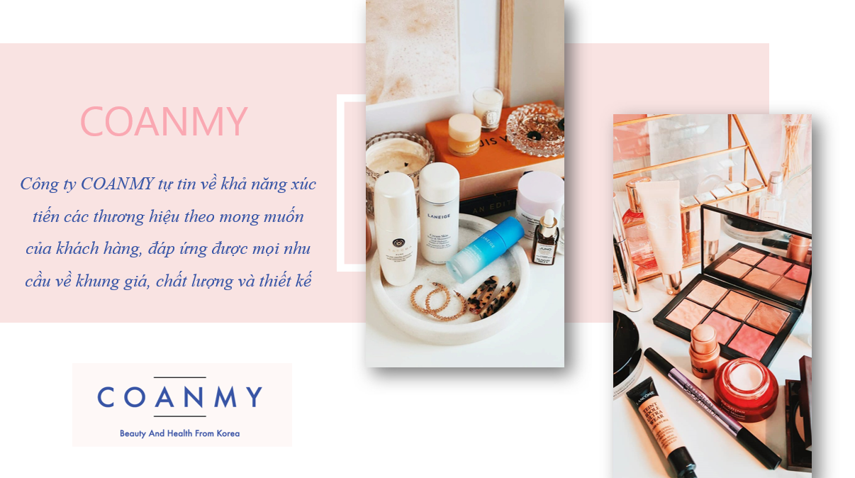Hàn Quốc là một quốc gia có ngành công nghiệp mỹ phẩm vô cùng phát triển mà chất lượng đã được người tiêu dùng đánh giá cao. Tại Việt Nam, nhu cầu của người tiêu dùng về các sản phẩm đang ngày càng nhiều. Chính vì thế, COANMY đã đứng ra với vai trò giúp các đại lý, nhà kinh doanh có thể liên kết với các thương hiệu mỹ phẩm xuất sắc của Hàn Quốc, đem đến những sản phẩm tinh hoa,với chất lượng đảm bảo, đạt tiêu chuẩn, đa dạng mẫu mã,.. cho người tiêu dùng Việt Nam.