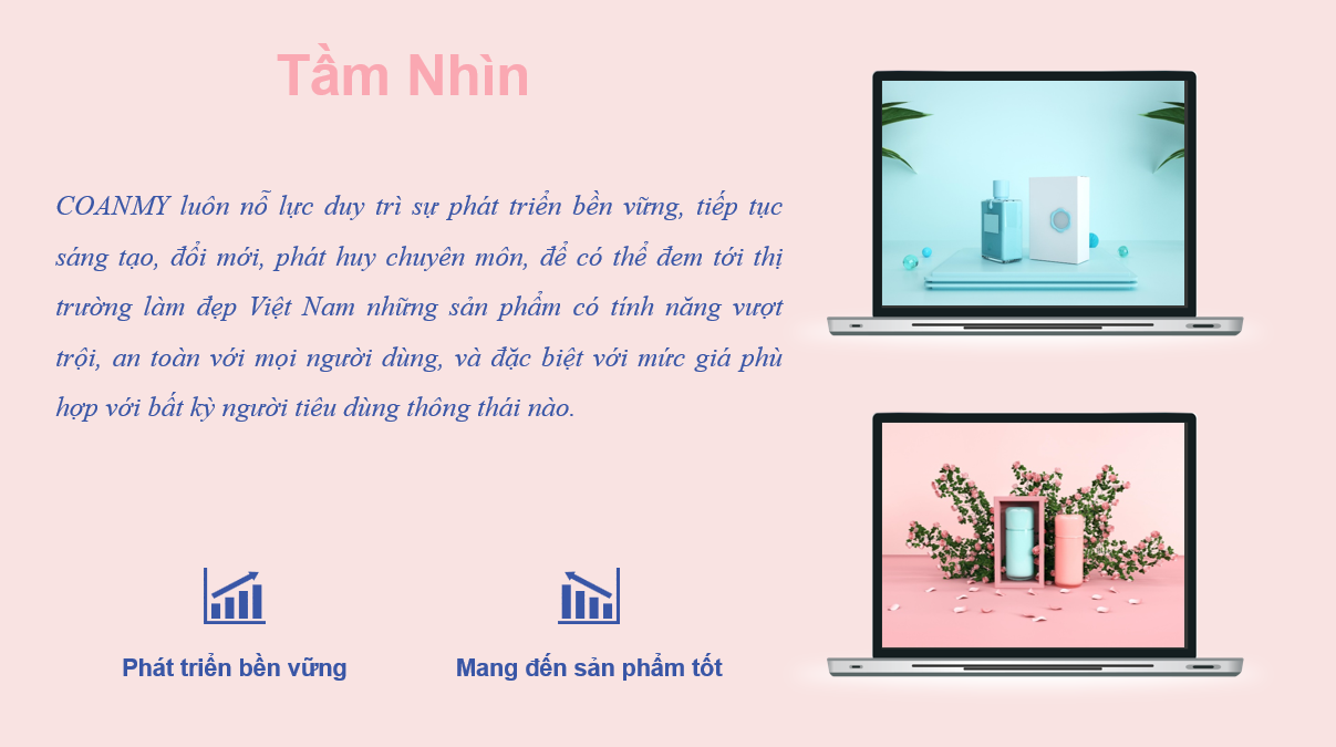 COANMY định hướng mang đến cho thị trường mỹ phẩm Việt Nam một sự đổi mới, cải tiến, trong đó, các sản phẩm đều lành tính, an toàn và có giá thành phải chăng, phù hợp với người tiêu dùng Việt Nam.